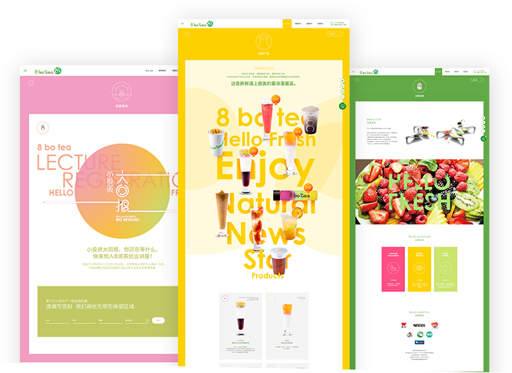八波茶【8波茶】茶飲品牌以手工制作珍珠為特色,著力打造一個屬于家門口“星巴克”茶飲品牌。邁若網絡為8botea量身定制符合其品牌健康、活潑、自然屬性的品牌網站。