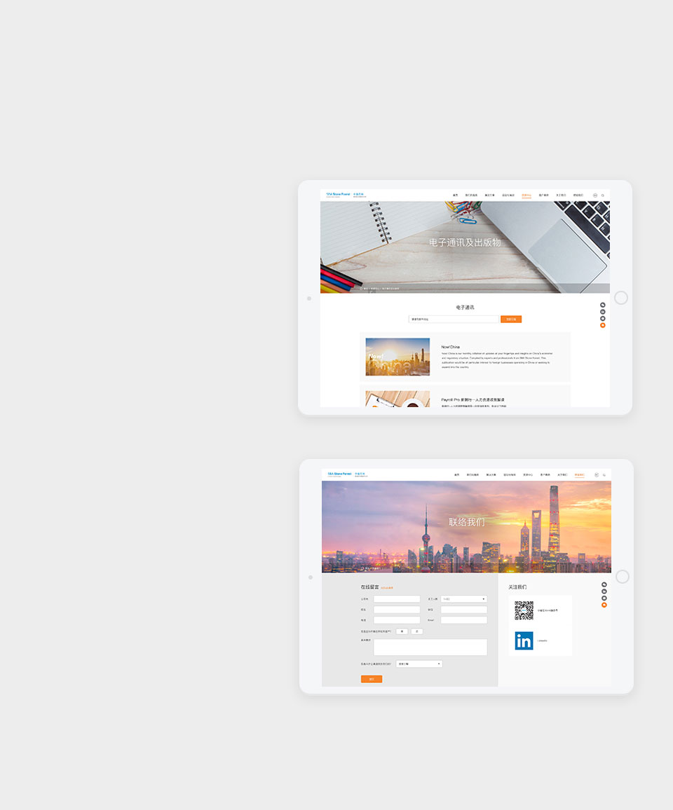 首頁(yè)中將業(yè)務(wù)分成“為企業(yè)服務(wù)”和“為員I服務(wù)”兩大類,利用流動(dòng)的線條將六大核心服務(wù)項(xiàng)目串聯(lián)起來(lái),融合頁(yè)面滾動(dòng)式加載效果,給用戶帶來(lái)全新的瀏覽體驗(yàn)。