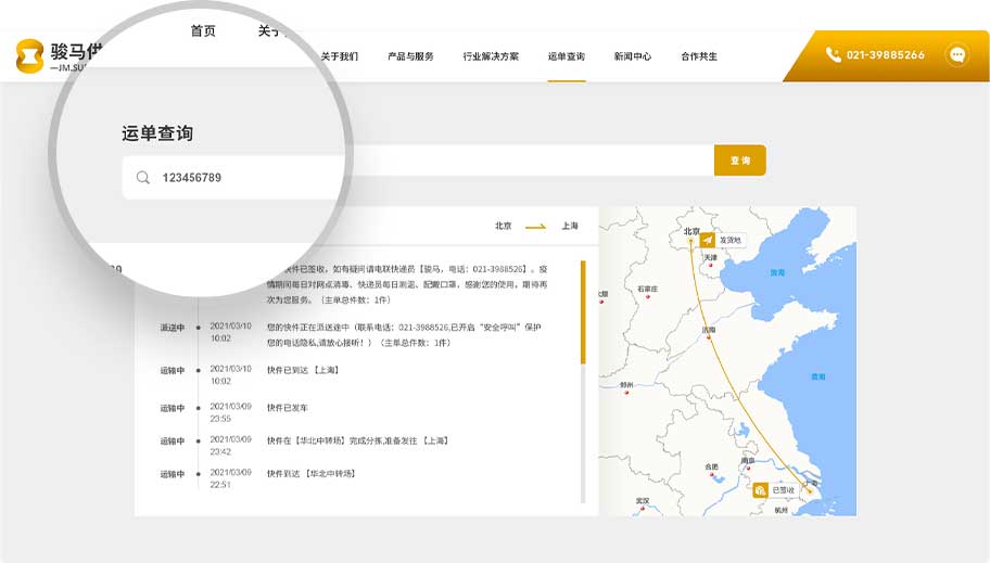 網(wǎng)站加入了在線查詢運單功能,通過運單號來跟蹤物流信息,信息每一步可實時進行更新,形成標準、高效、規(guī)?;奈锪鳟a(chǎn)品,打造全國性的綜合物流網(wǎng)絡服務體系。