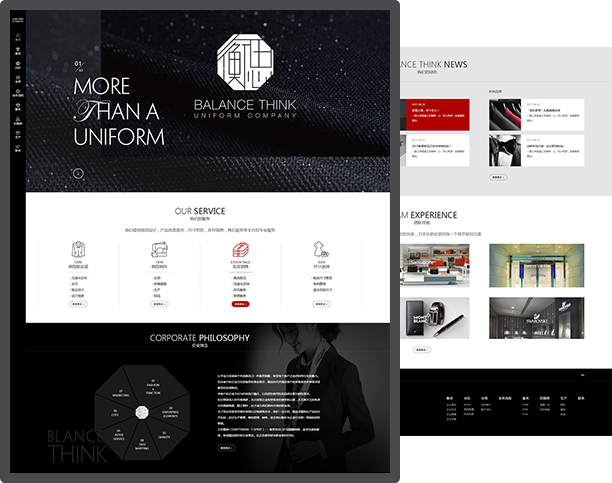 網站圍繞衡思制服“無微不至,盡善盡美”品牌形象進行設計,簡潔大氣又不失職業風范,展現公司對產品精益求精的設計理念。頁面加入符合行業“精工細作”特性的手繪icon設計,整體效果美觀大方,提高用戶瀏覽體驗。