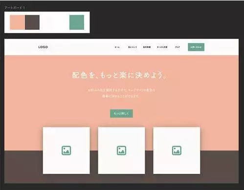 那么讓我們將已經做成的配色板上的配色,運用到你的網頁中吧!這一次的設計案例,我們在這個簡單的網站線框上練習使用配色。