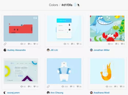 在調色板中選擇顏色作為參考時、調色板的上段顯示的作品是最新的,設計思維最活躍的作品。