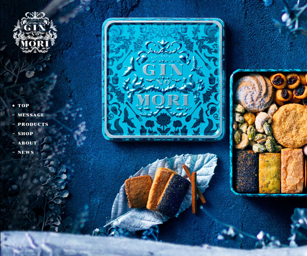 Ginnomori是一家制作堅果、黃油類餅干的公司,網(wǎng)站“冰晶森林”大圖一貫到底,皇家標志的logo無不