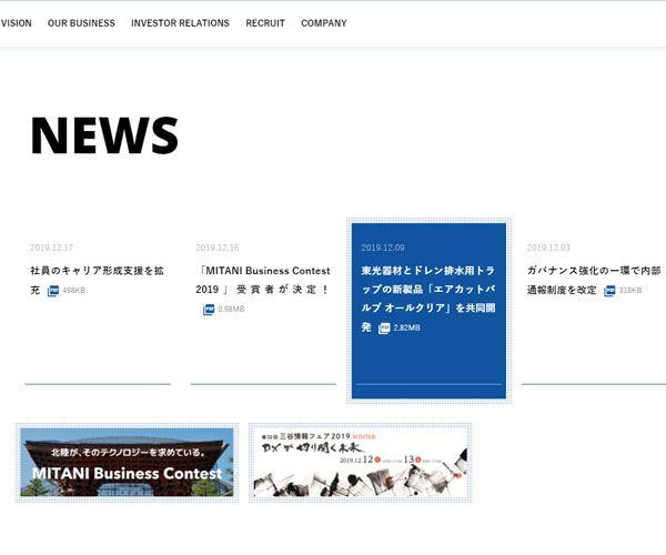 Mitani是家不斷轉型的多元化公司,網站整體布局設計風格簡潔大方,動態的發展、為客戶帶來