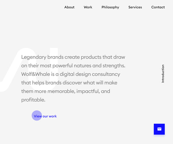 Wolfwhale是一家設計咨詢公司,網站通過藍色的主色調和多樣化的字體以及精細
