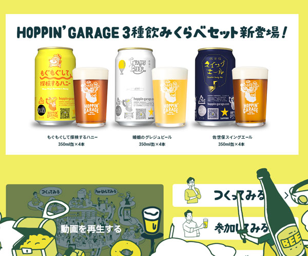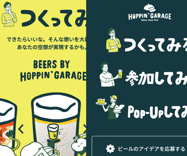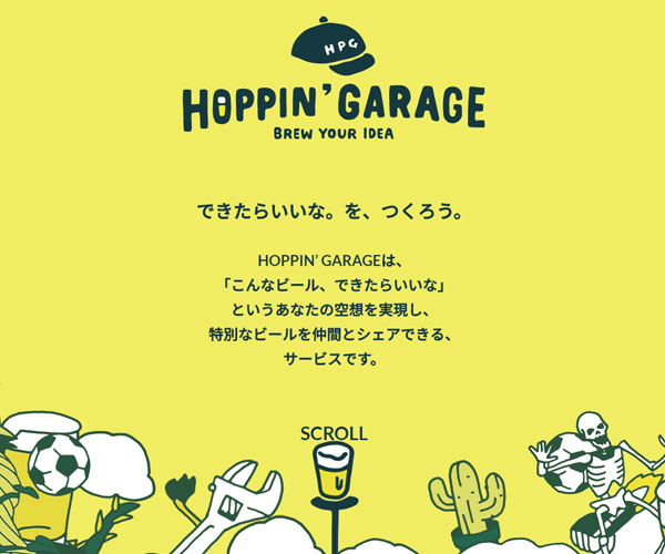 Hoppin制作各種不用類型的啤酒,網站以黃色的背景作為基礎,鋪滿屏幕的簡單動畫設計,