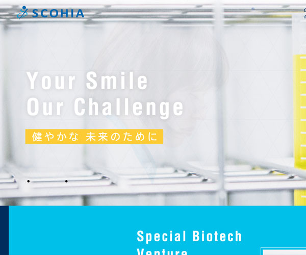 Scohia在心血管、代謝、腎臟方面有著高專注度的生物企業,網站以不同的藍色基調,