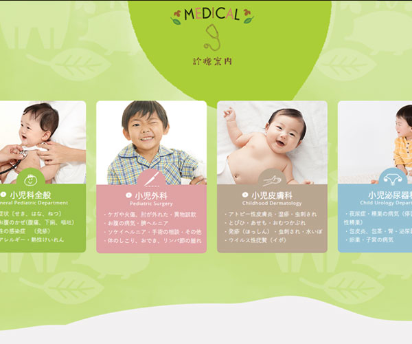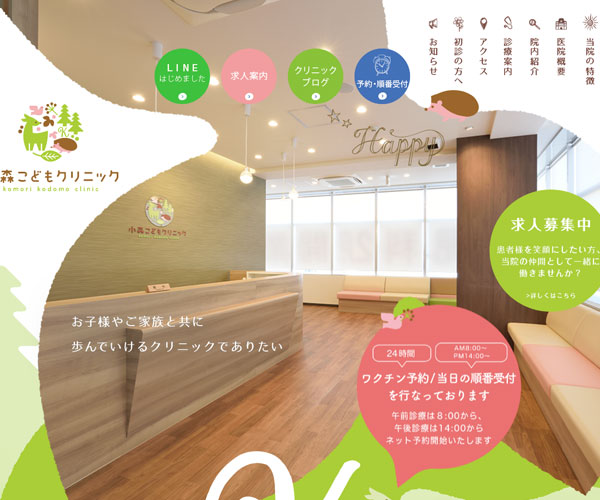 Komori-kodomo是一家兒童診所,網站以充滿童真的插畫形式與多形式的背景樣式