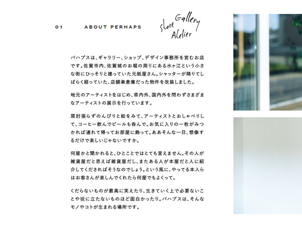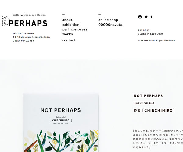 Perhaps是一家畫廊的展廳,網(wǎng)站的整體設(shè)計(jì)風(fēng)格較為簡(jiǎn)潔,簡(jiǎn)單、清新的圖文排版形式