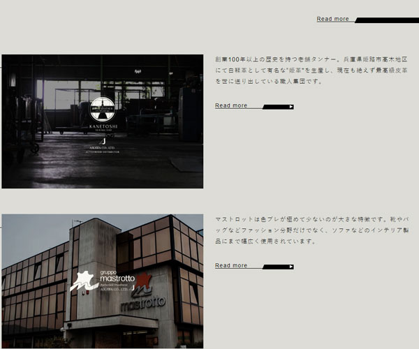 Aikawa提供精美的皮革,網站以精美的整屏圖片為基礎,獨特的圖文排版形式
