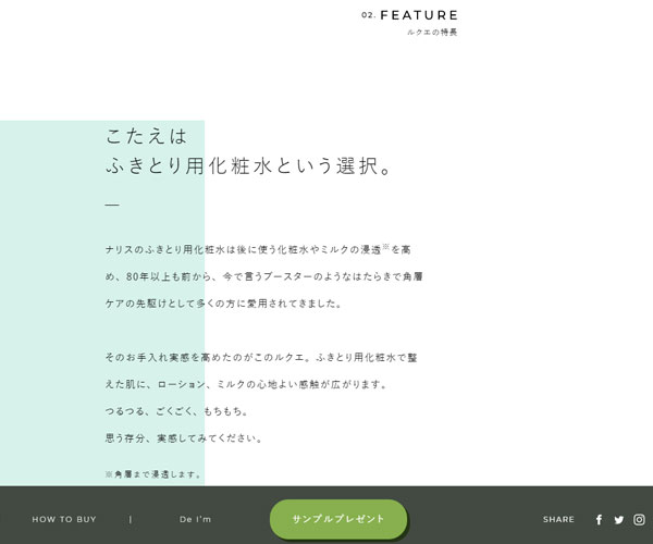 Naris制作女式護膚霜,網站以清新的綠色為主建設網站,經典的左右排版方式,
