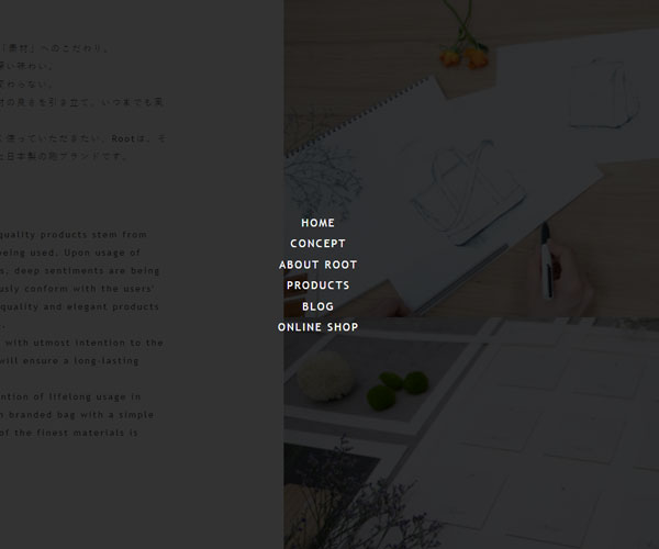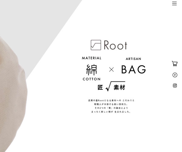 Root1887制作各式各樣的包包,網站的建設結合經典的電商網站,外加特別的棱形切角